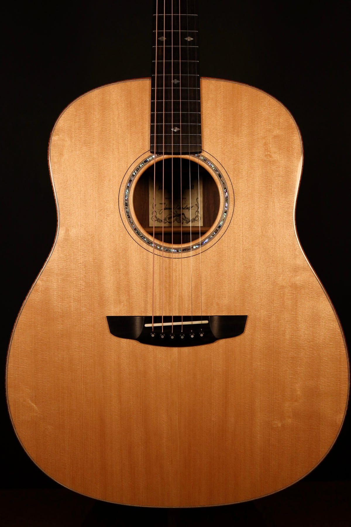 "The Standard series, with its graceful curving lines, is a larger-bodied guitar with a clarity that is uncanny! The amazingly rich, powerful bass and midrange is matched to a brilliant treble and shimmering harmonic overtones. Arguably the most balanced guitar available from Goodall Guitars, James feels that the Standard model is the crowning achievement of his luthierie career. With approximately the same proportions as the ever popular dreadnought shape, the resemblance stops with the size. More than one musician has commented that "this guitar makes others sound like they are stuffed full of cotton." Whether you are in your living room, at the recording studio, or on stage, this one excels. Truly it can be said that this is the Standard by which all other acoustic guitars are measured."